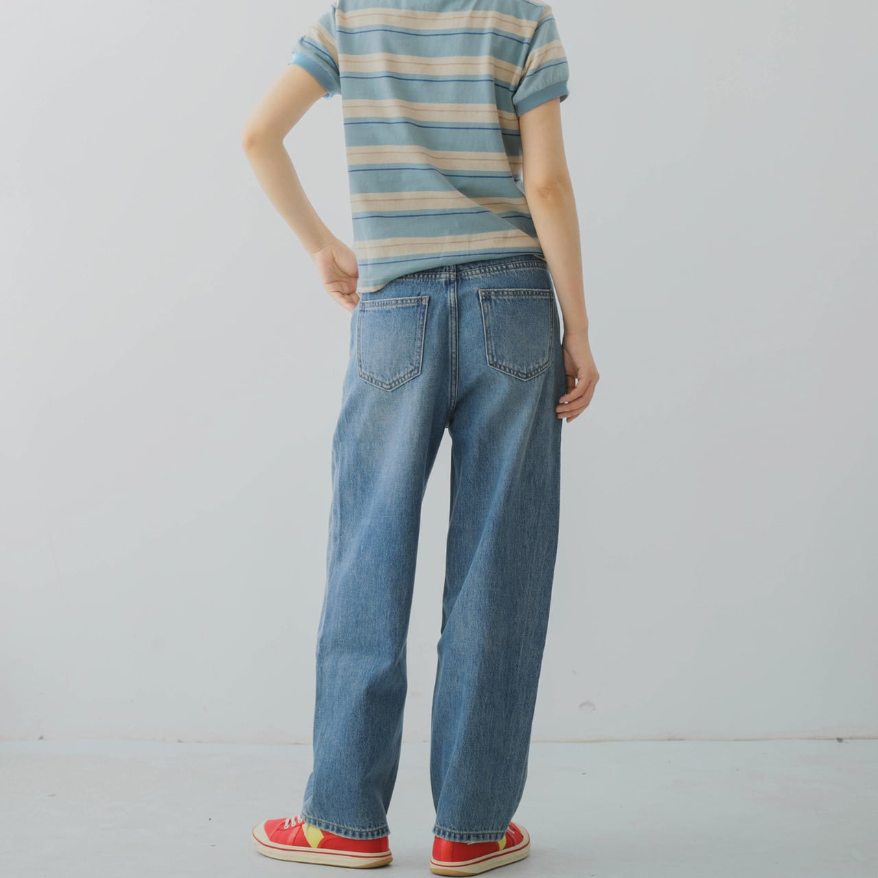 ストレートワイドフルレングスデニムパンツ F0131