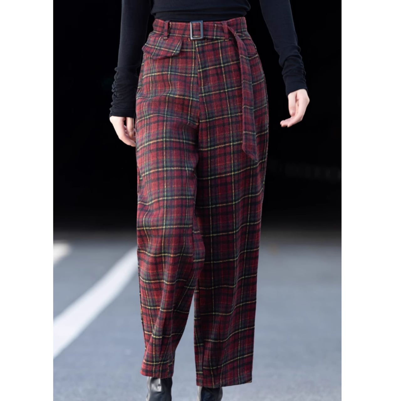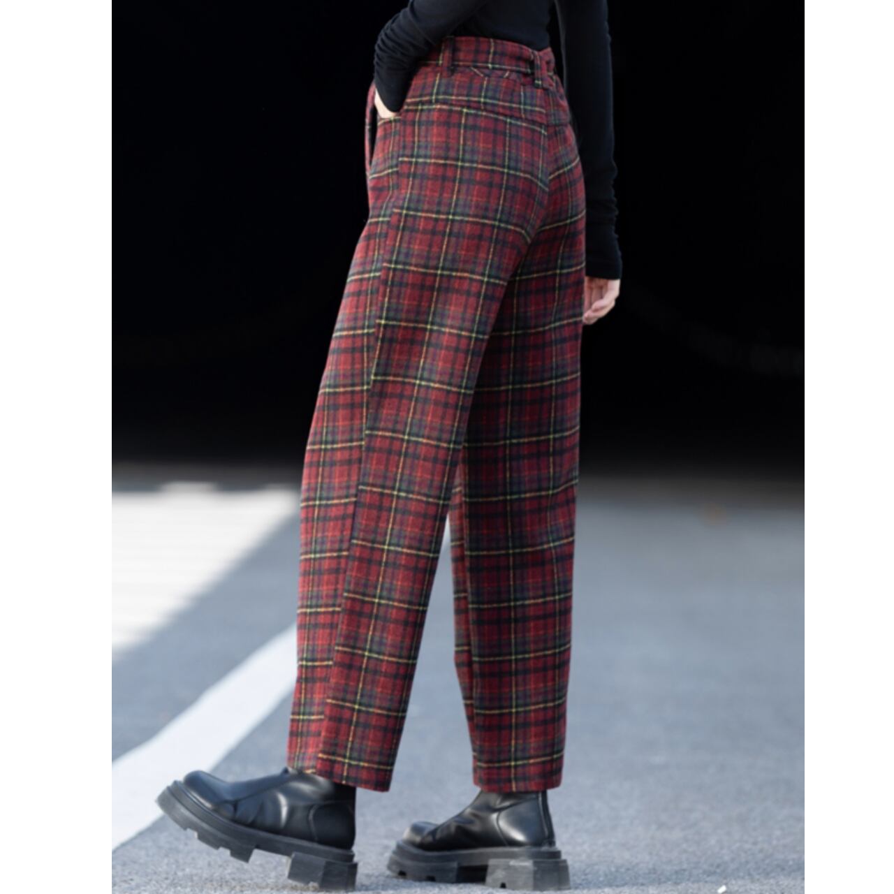 チェック柄 テーパードフルレングスパンツ F0103