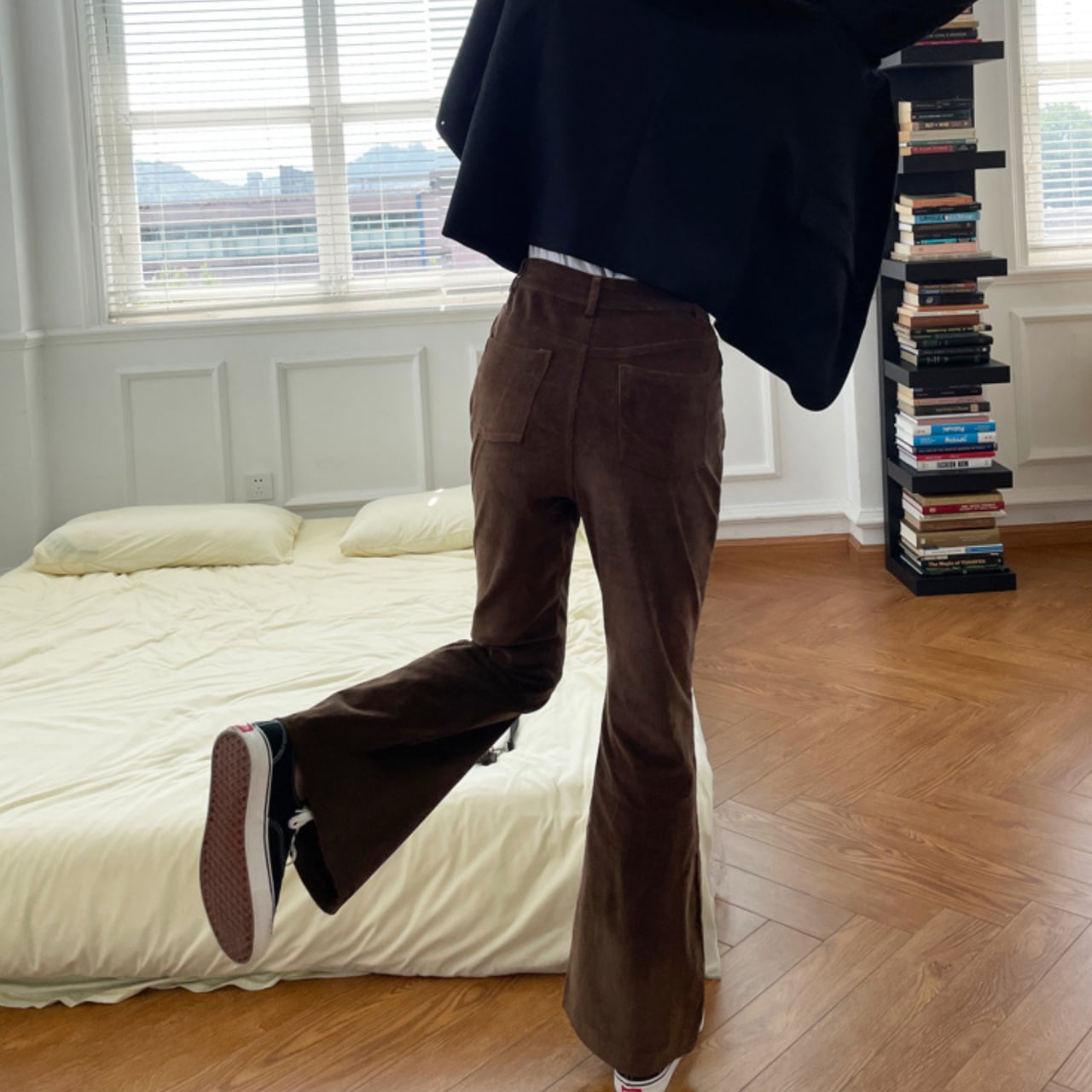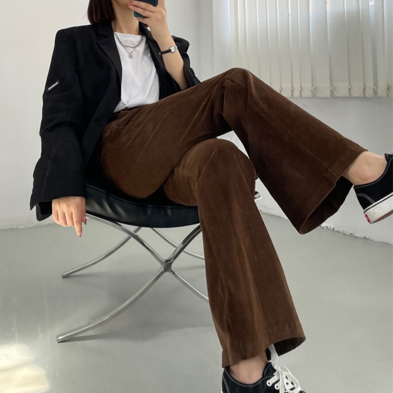 カジュアルな着こなしにぴったりの、フレアワイドコーデュロイロング丈パンツ。