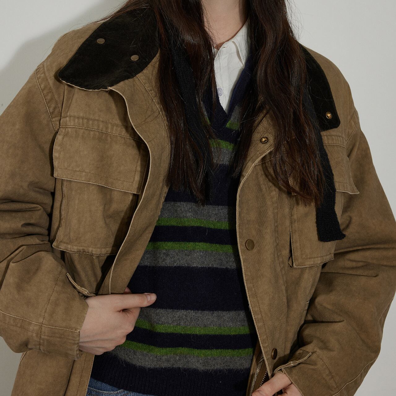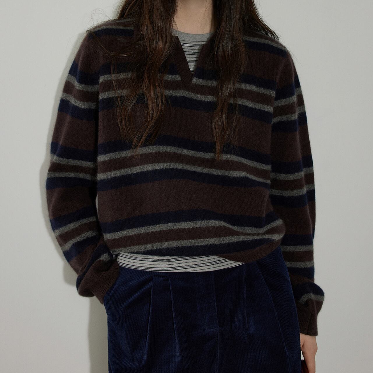 長袖なので、季節の変わり目にも重宝します。普段使いはもちろん、少し上品な装いにも合わせやすい一枚です。