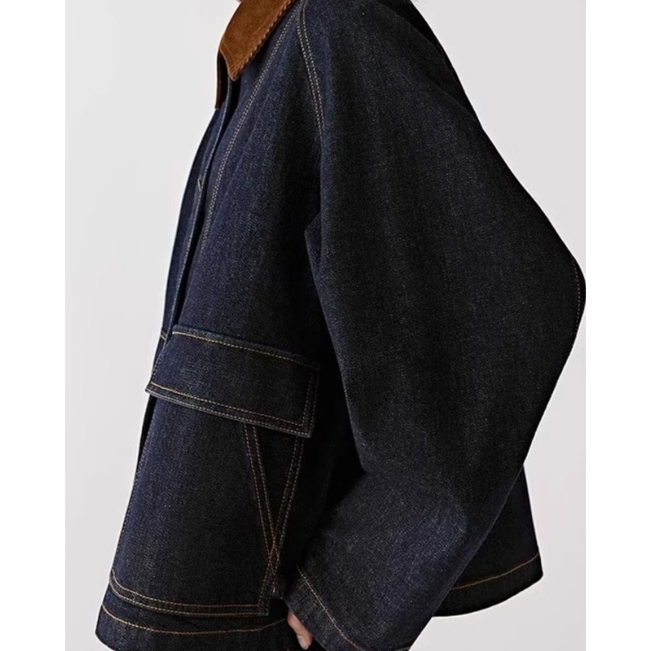 普段使いに最適な、コットンヒップ丈ジャケットです。シャツカラーのデザインが、洗練された印象を与えます。ちょっとしたお出かけにも、カジュアルな普段着にも合わせやすい一枚です。パッチポケットが、さりげないアクセントになっています。