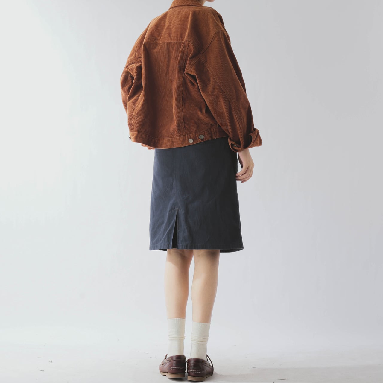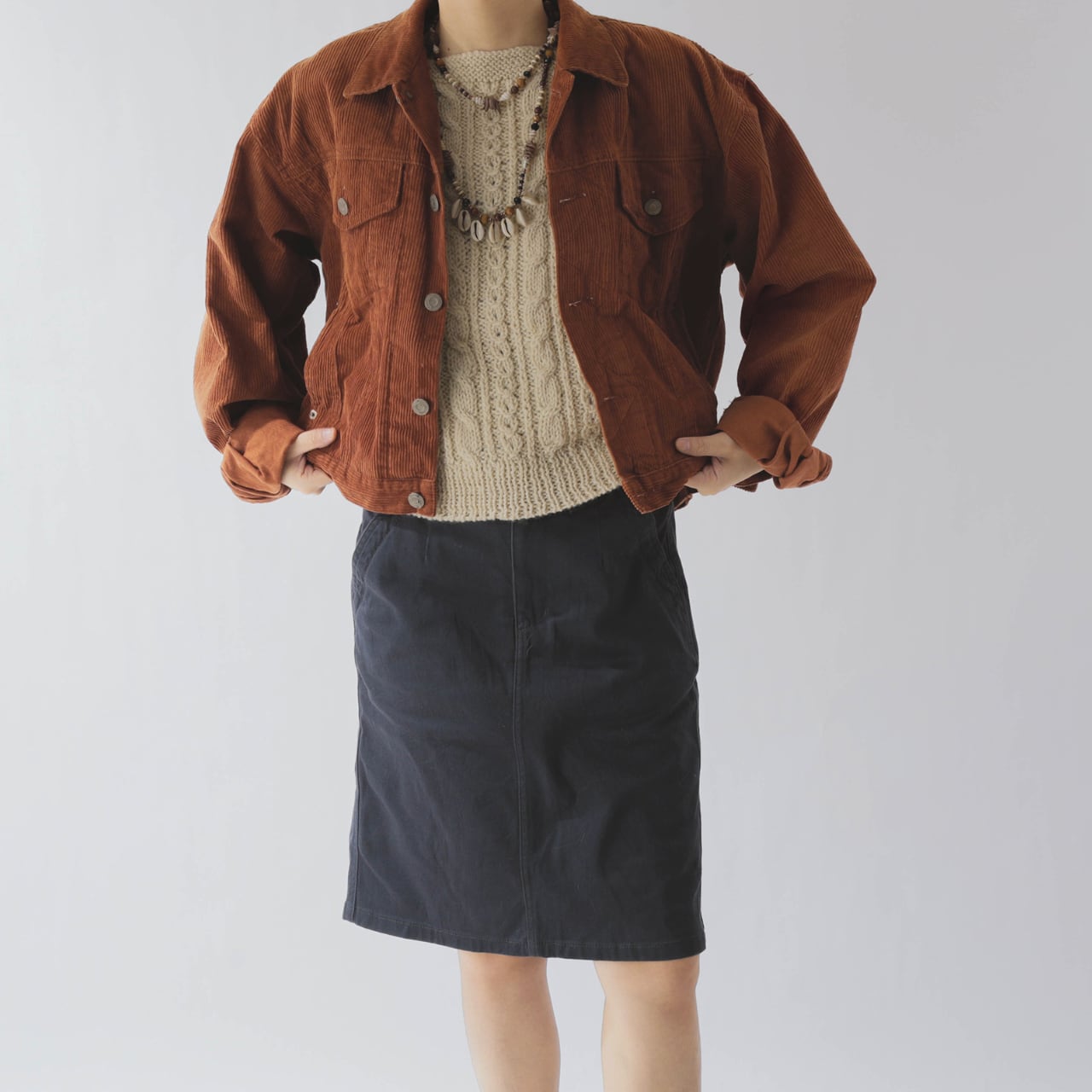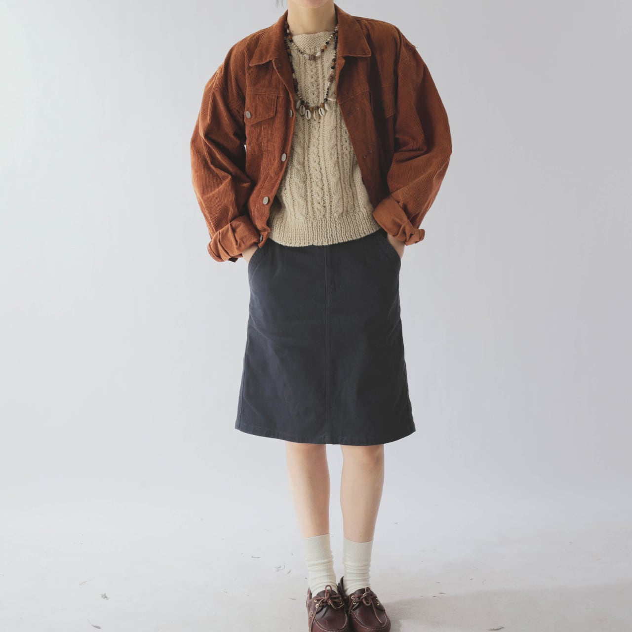 ヒップ丈なので、スカートやパンツスタイルにも合わせやすく、カジュアルな着こなしにぴったりです。
