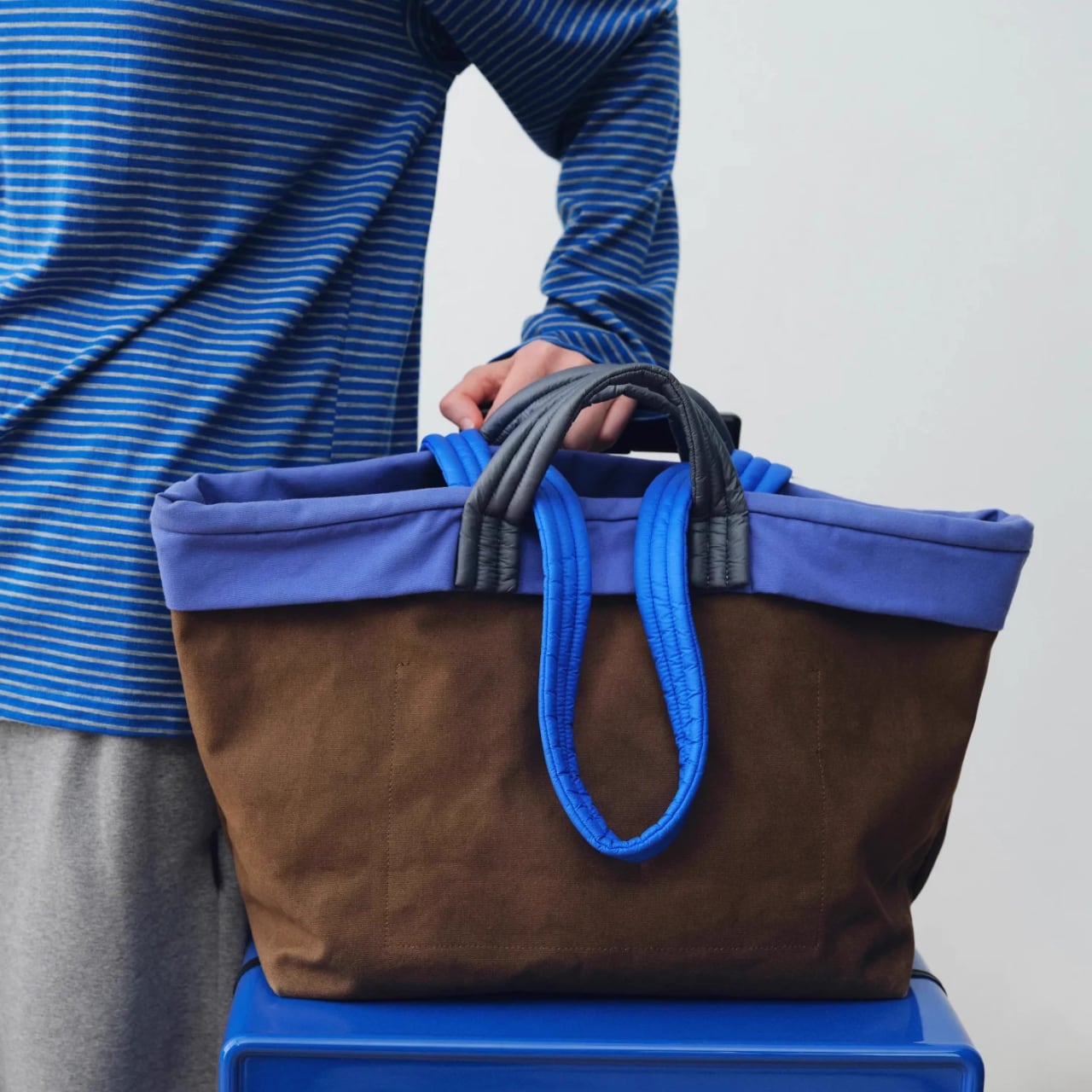 バイカラートートバッグ。通勤・通学から、お買い物、旅行まで幅広いシーンで活躍します。