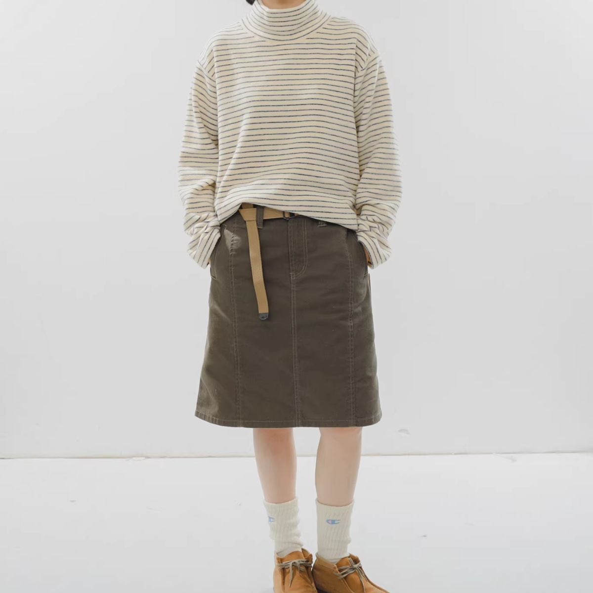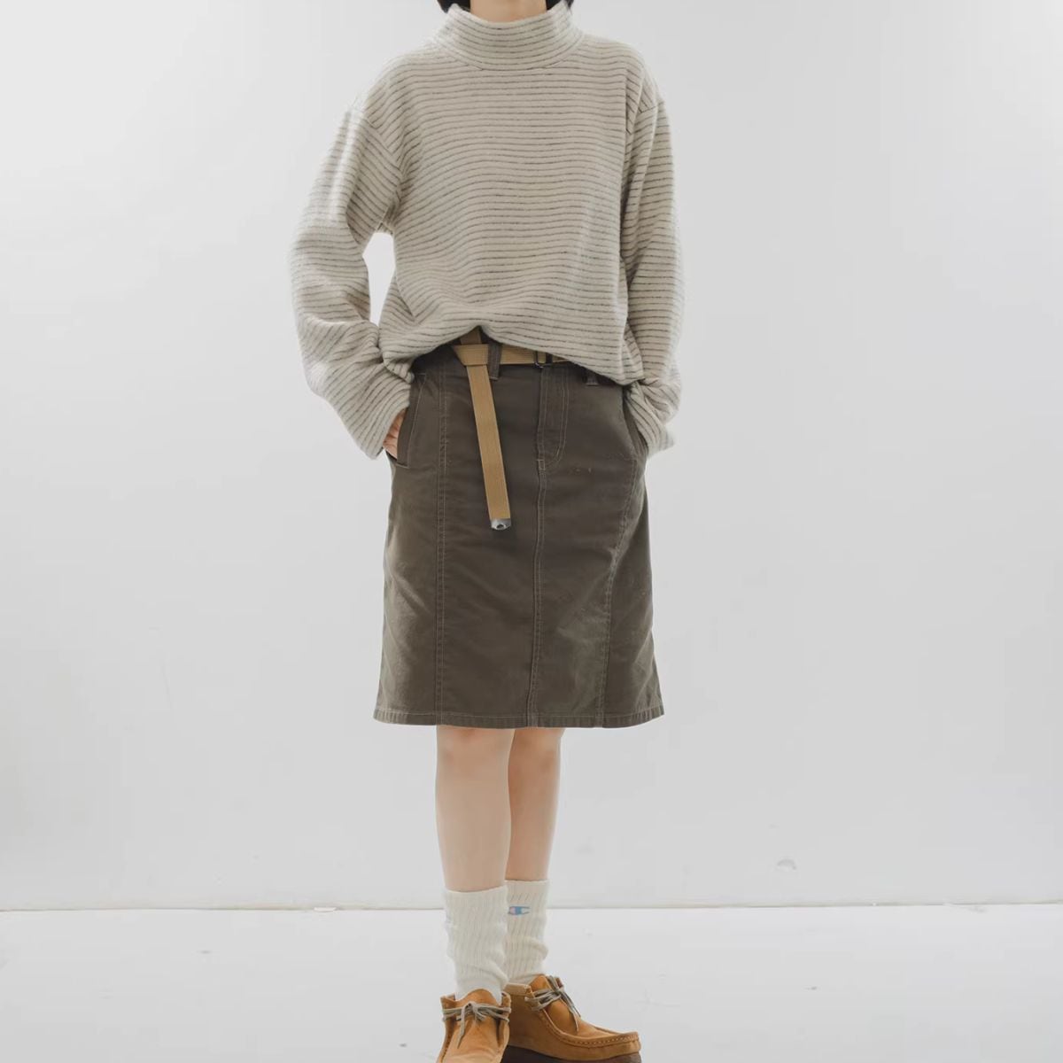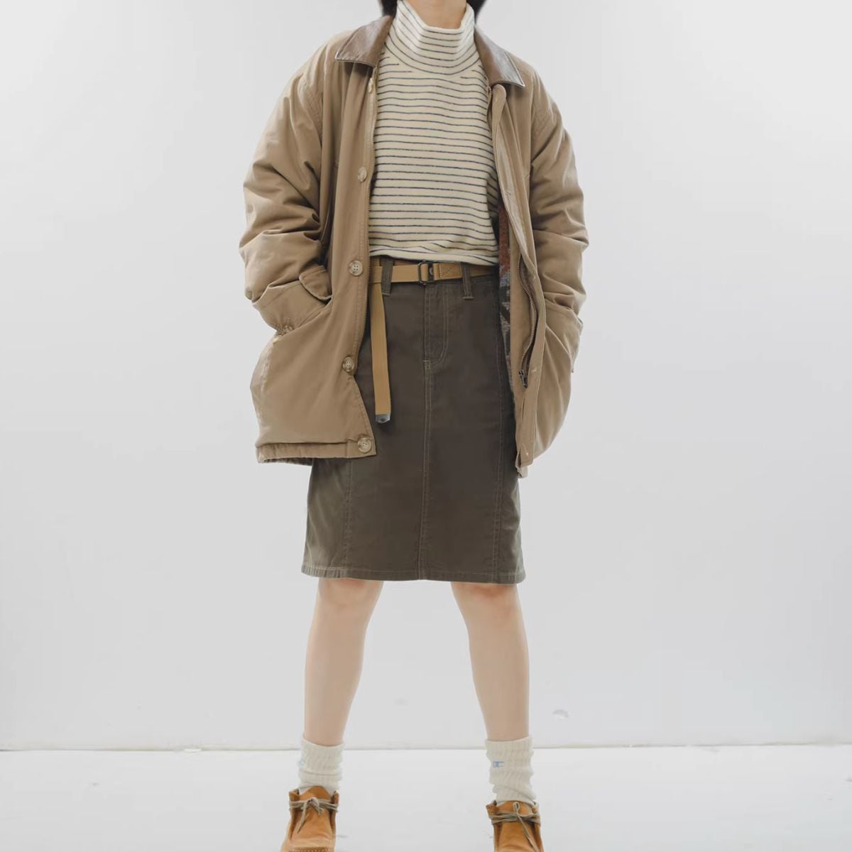 ハイネックのデザインは、首元をすっきりと見せつつ、暖かさもキープ。