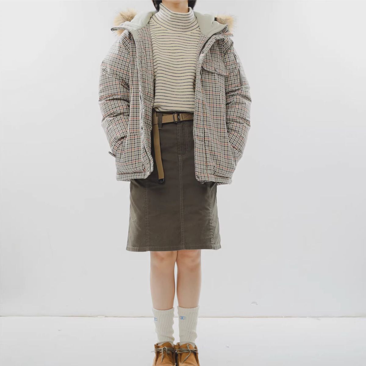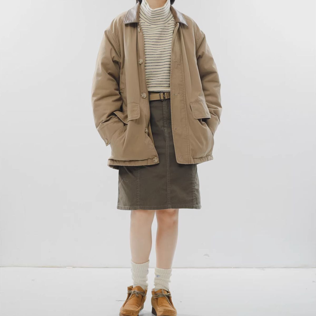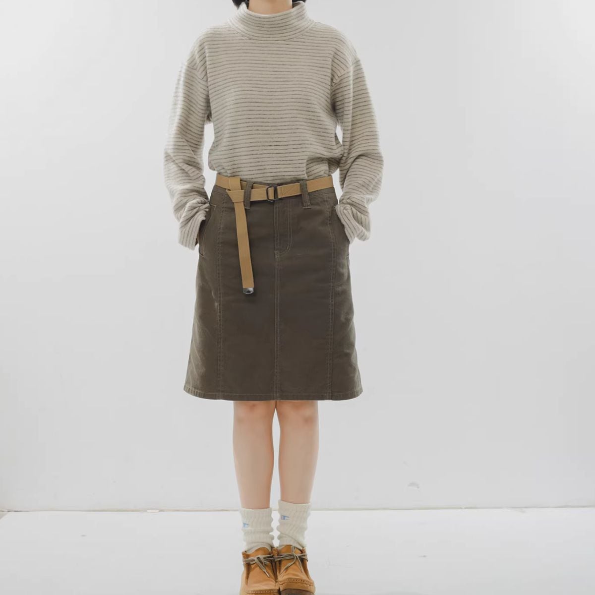 ハイネックのデザインは、首元をすっきりと見せつつ、暖かさもキープ。