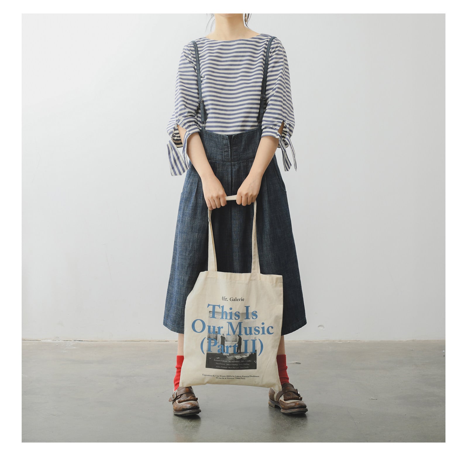 サスペンダーがアクセントになり、シンプルなコーディネートも一気におしゃれ見えします。
